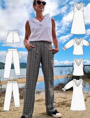 All our sewing patterns are available in digital format (PDF files that arrive straight to your email inbox). You can print them at home (on A4 or Letter) or take the larger scale AO size to your local printer. Please refer to the the details under "Size and Purchasing Options" for each pattern.
